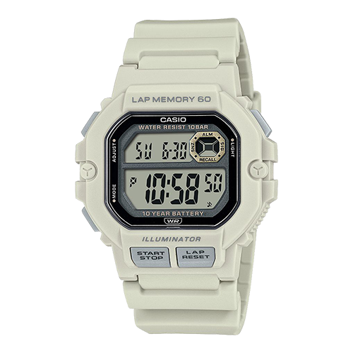 ヘビーデューティな角型ケースに、ランニング中でも視認し易いデジタル表示、ストップウオッチ計測に便利なフロントボタンを採用。突然の雨や水濡れを気にせず使える10気圧防水、暗闇でも安心のLEDライト、電池寿命約10年等、ワークアウトに役立つ機能を搭載しました。