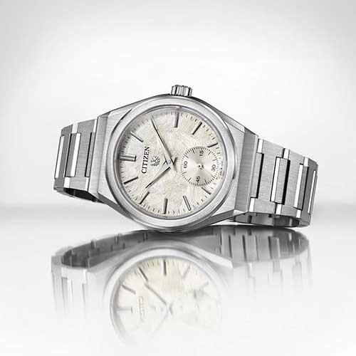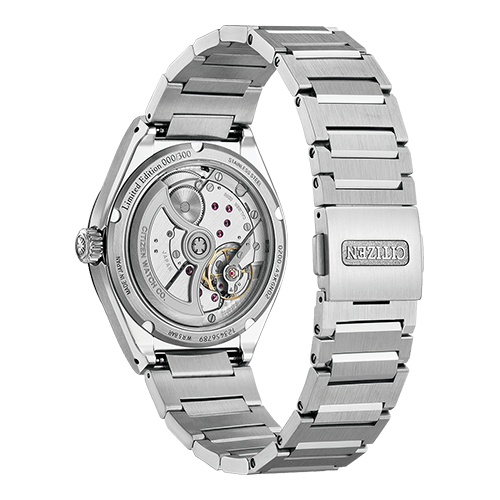 美しき文字板に宿る、イーグルの羽ばたきを思わせる躍動感。機械式ムーブメントCaliber 0200が刻む、新たな始まり。アイボリーカラーの文字板に、The CITIZENのシンボルである「イーグル」の羽を模したパターンを電鋳で施し、落ち着いた色味の中に躍動感のある仕上げが印象的なモデルです。裏ぶたはシースルーバック仕様で、リミテッドエディションナンバーが刻印されています。