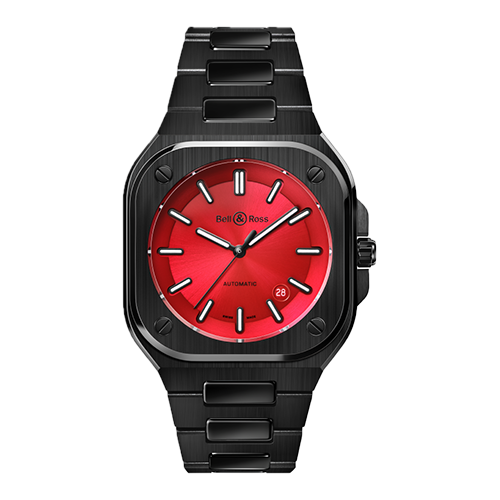 日本限定99本のリミテッドエディション。 この新しいBR-05のバリエーションは、アーバンコレクションを独自のエクスクルーシブカラーで再解釈したモデルです。 航空業界でも採用される素材であるセラミック製のケースは、堅牢性と高い技術性を象徴しつつ、Bell & Rossを代表するカラー「ブラック」に忠実であり続けます。