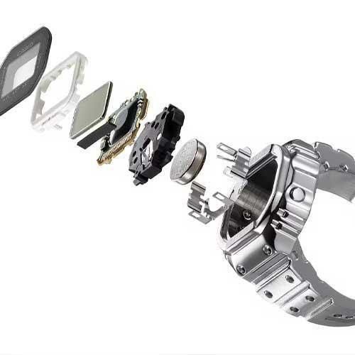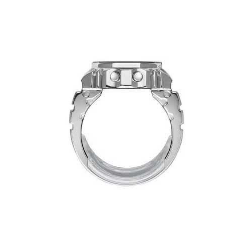 カシオウオッチの複雑造形を指輪サイズのフルメタルデザインで細かく再現。さらに、ガラス接着技術により気密性を確保。電池交換可能でありながら、日常生活用防水を実現しています。