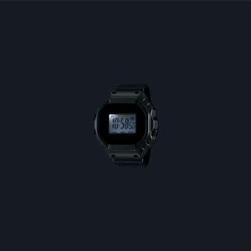 リングサイズは22号。19号用(内径19mm)と16号用(内径18mm)のサイズ調整用スペーサーを同梱しました。一般的な腕時計用モジュールに比べ約1/10にダウンサイジング。小型ボタン電池と組み合わせることで、3ボタンを備えたデジタルウオッチを指輪サイズで実現しました。さらに、7セグメント表示の液晶も装備。時・分・秒はもちろん、日付、デュアルタイム、ストップウオッチなどを表示します。