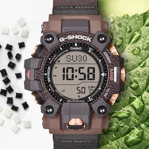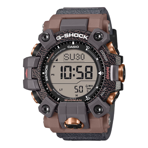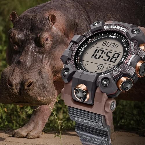 「Love The Sea And The Earth」をテーマに、環境保全団体「EARTHWATCH」をサポートする2025年のコラボレーションモデルが登場しました。今年のモチーフは、絶滅が危惧される「カバ」です。過酷な環境下で力強く生きるその姿を、G-SHOCKの陸上特化シリーズ「MUDMAN(マッドマン)」で表現。ベゼルやバンドにはカバの硬くざらついた皮膚をイメージした凹凸のあるテクスチャーを施し、ブラウンやグレーを基調としたカラーリングで野生のタフネスを体現しています。