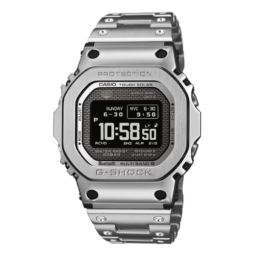 最大の技術的進化は、フルメタルスクエア系として初めて搭載されたMIP(メモリインピクセル)液晶です。高精細かつ広視野角な表示は、日差しの強い屋外でも抜群の視認性を確保します。また、ステンレススチール素材をフルに使用し、ヘアラインと鏡面仕上げを巧みに使い分けることで、普遍的なシルバーカラーに奥行きと洗練された印象を与え、大人の手元にふさわしい質感を演出しています。